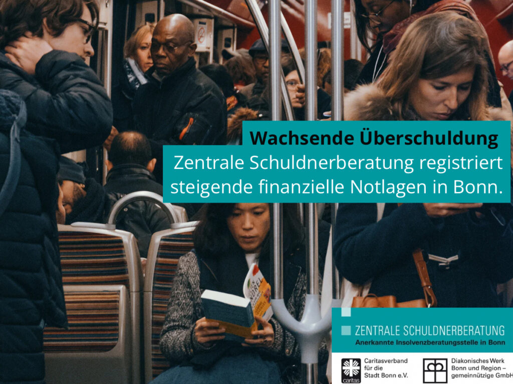 Wie aus dem Jahresbericht der Zentralen Schuldnerberatung von Diakonie und Caritas hervorgeht, stieg die Überschuldungsquote in der Bundesstadt im Jahr 2025 von 7,04 auf 7,23 Prozent. Das spiegelt die bundesweite Entwicklung wider. Was nüchtern nach Statistik klingt, wird im Alltag schnell greifbar: In einer voll besetzten Bonner Straßenbahn mit etwa 180 Fahrgästen stehen durchschnittlich rund 13 Menschen, die aktuell mit massiven finanziellen Problemen und der Angst vor einer Pfändung leben. Und in einer Schulklasse mit 35 Kindern kennen mindestens zwei die belastende Situation, dass ein Gerichtsvollzieher vor der Tür steht und ein Elternteil besucht.